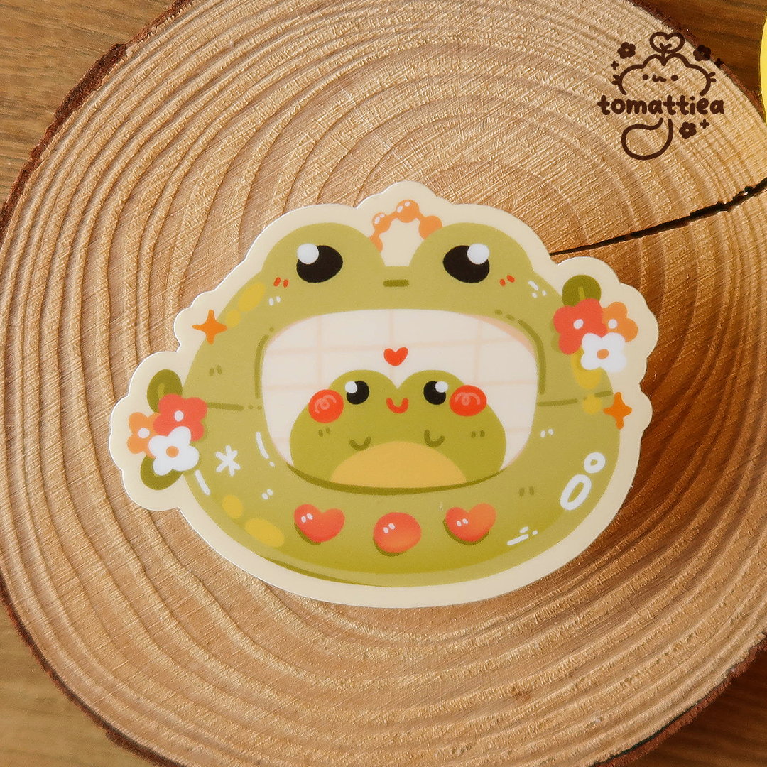 🍀 Handmade cute tamagotchi frog vinyl sticker 🍀